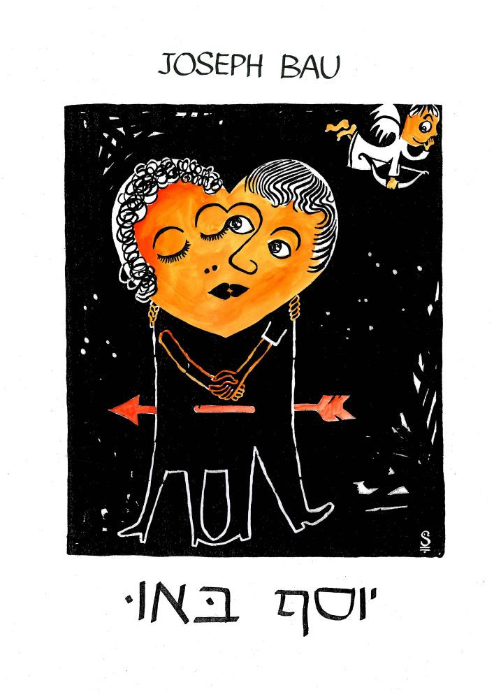 סגנון ייחודי של יוסף באו – שילוב של ציור בשחור לבן ובצבעי מים על בריסטול בגודל A3 עם פספרטו – "זוג אוהבים"