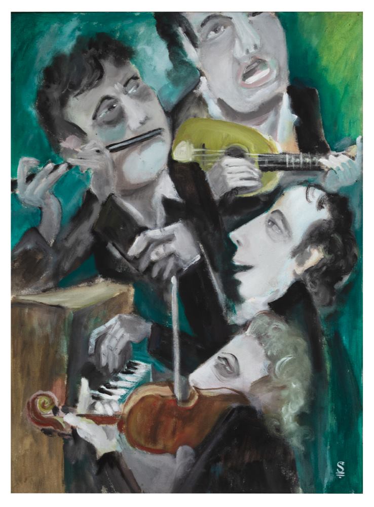 ציור שמן – ליטוגרפיה על קנבס, נגנים, שייך לסדרה של ציורי הנגנים שיוסף אהב כל כך