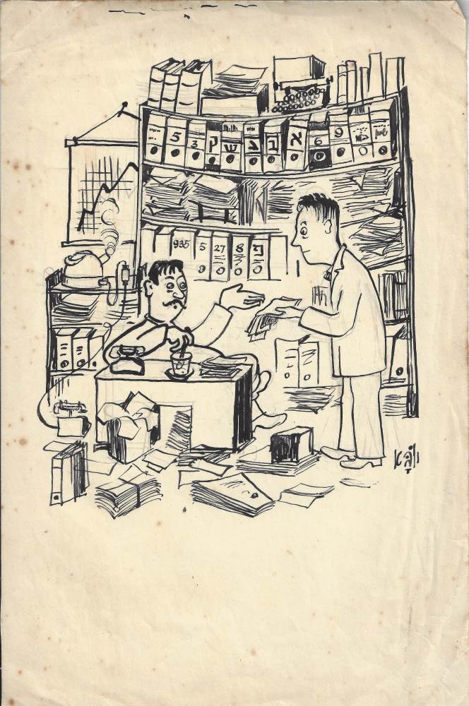 קריקטורה שיוסף באו אייר לאחר שעלה ארצה