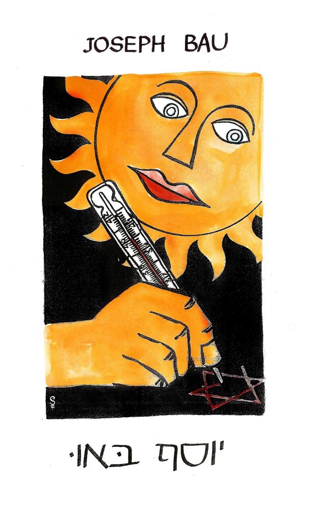 סגנון ייחודי של יוסף באו – שילוב של ציור בשחור לבן וכתמי צבע – בצבעי מים על בריסטול בגודל A3 עם פספרטו – "שמש"